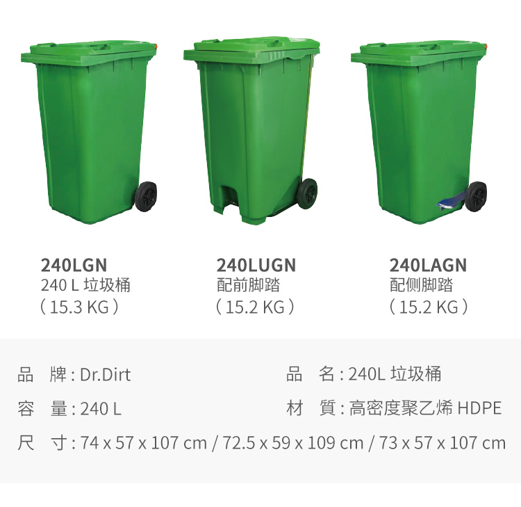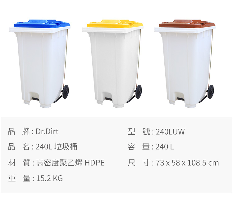 Dr.Dirt 4色環保回收垃圾桶 塑膠垃圾桶 240L