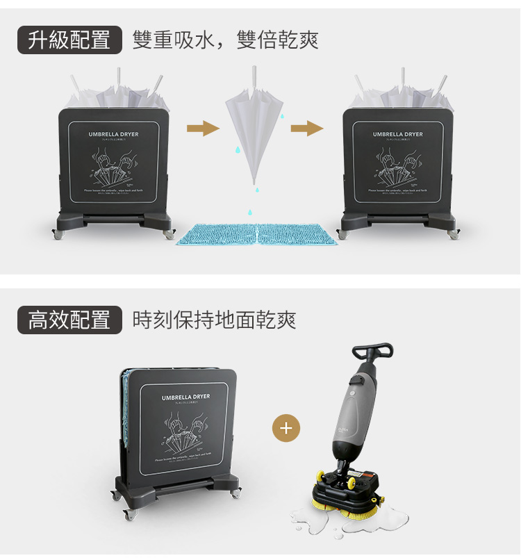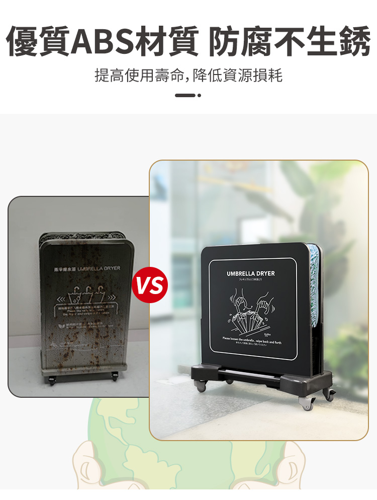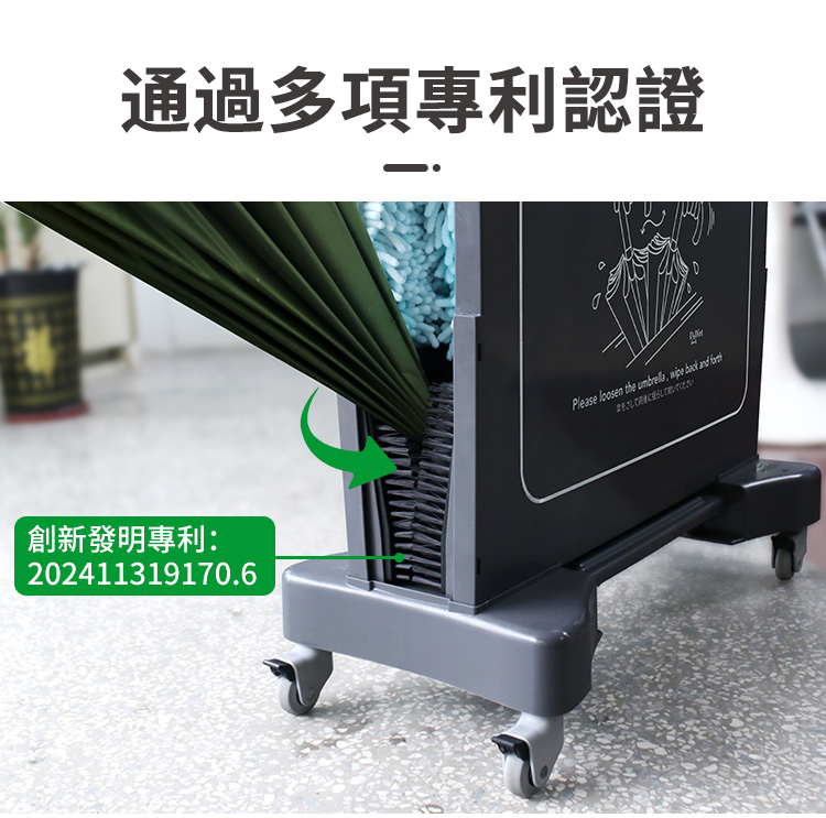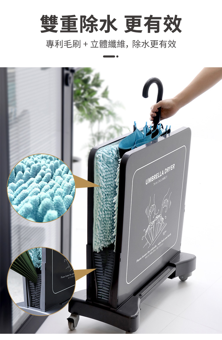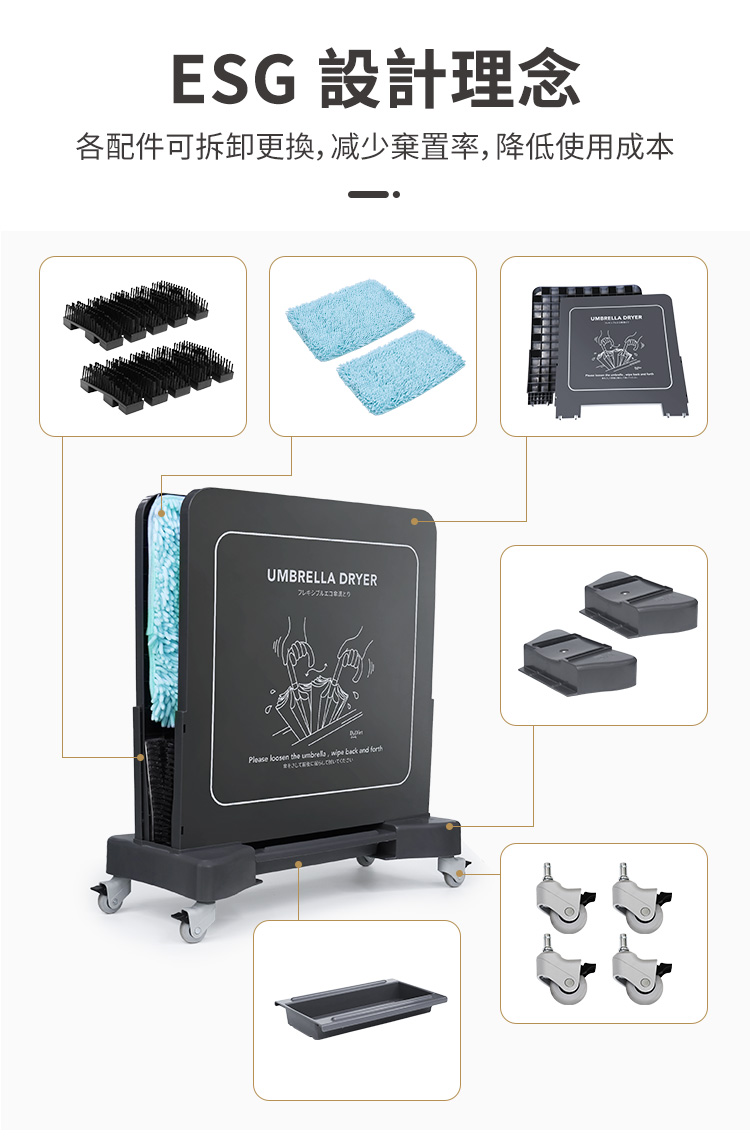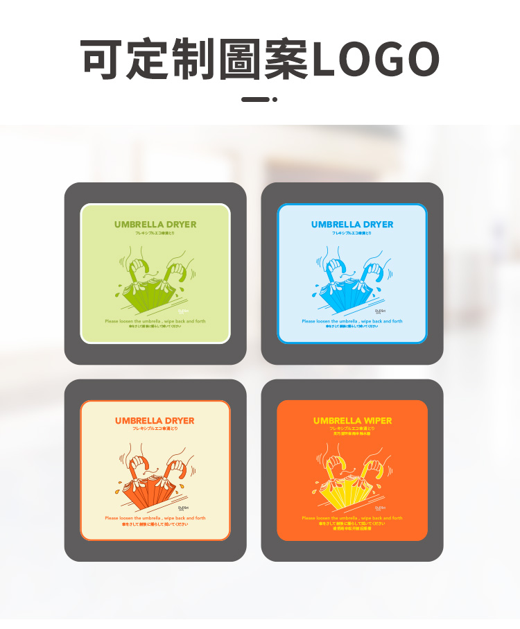 - 超強吸水纖維,迅速去除雨傘水滴, 採用黏貼式設計,方便更換清洗,防止細菌滋生。