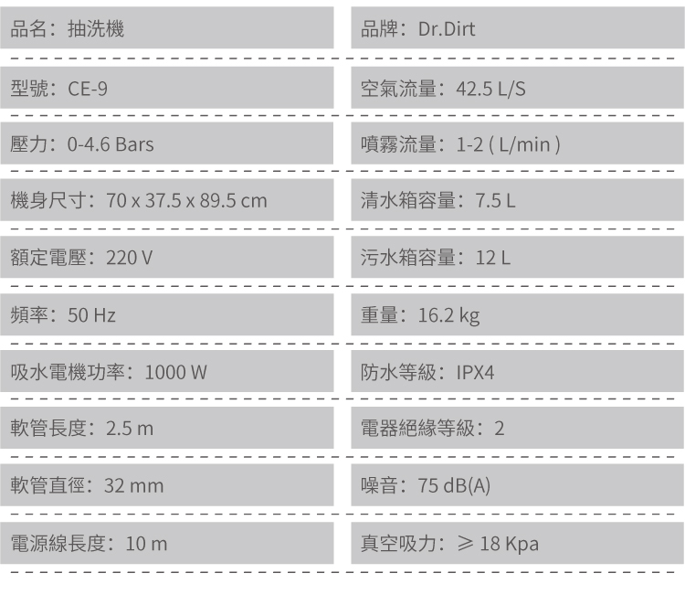 Dr.Dirt 分體式地毯抽洗機 噴吸軟管(適用於CE-9、CE-24)