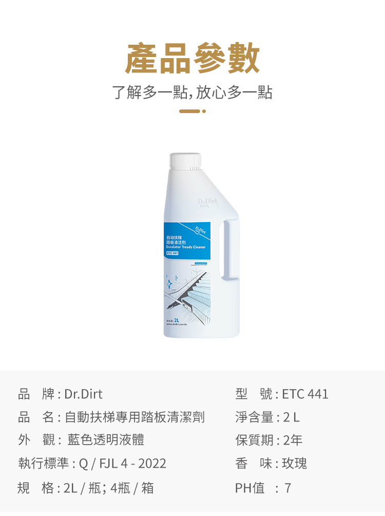 Dr.Dirt 2L自動扶梯踏板清潔劑 4瓶/箱 共8L