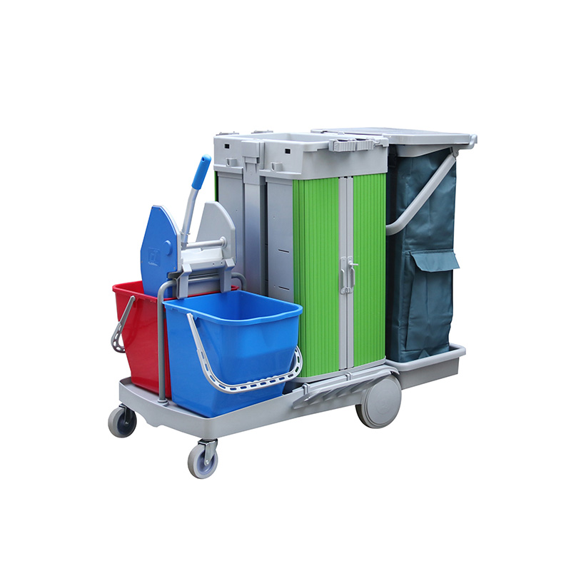 清潔服務車配儲物箱用於清潔衛生、垃圾收集的多功能清潔手推車。清潔推車方便攜帶清潔員所需的清潔工具,到各個需要進行清潔的場地,多功能清潔服務車快速全面地解決你的清潔需求。Janitorial Trolley ST 150G配有趟門儲物箱,能安全妥善地收納各種工具。常用於酒店、商場、機場、醫院、地鐵站、高鐵、車站、交通樞紐;Cleaning Cart也用於餐廳、賓館、超市、公寓、養老院、電影院;Cleaning handcart更常見於學校、辦公室、圖書館、展覽中心、廣場、月臺、商業樓等場所。