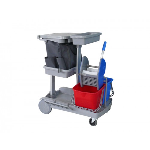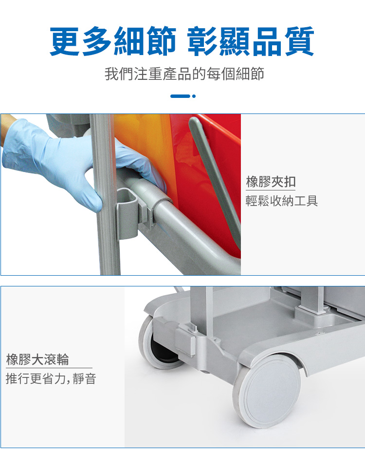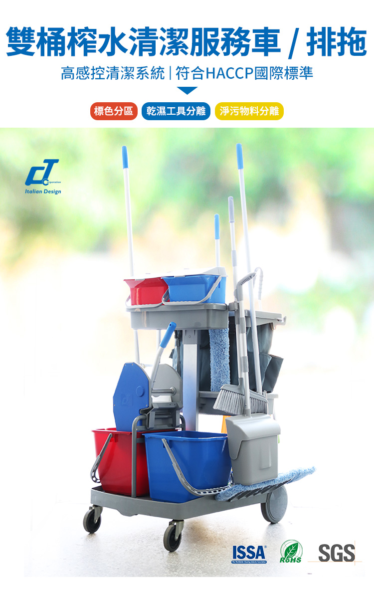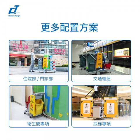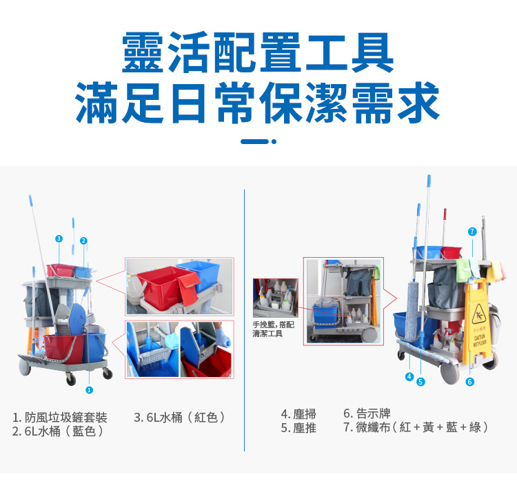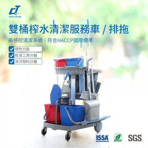 施達 趟門儲物箱+捲簾頂蓋清潔清潔服務車/平拖 配三桶