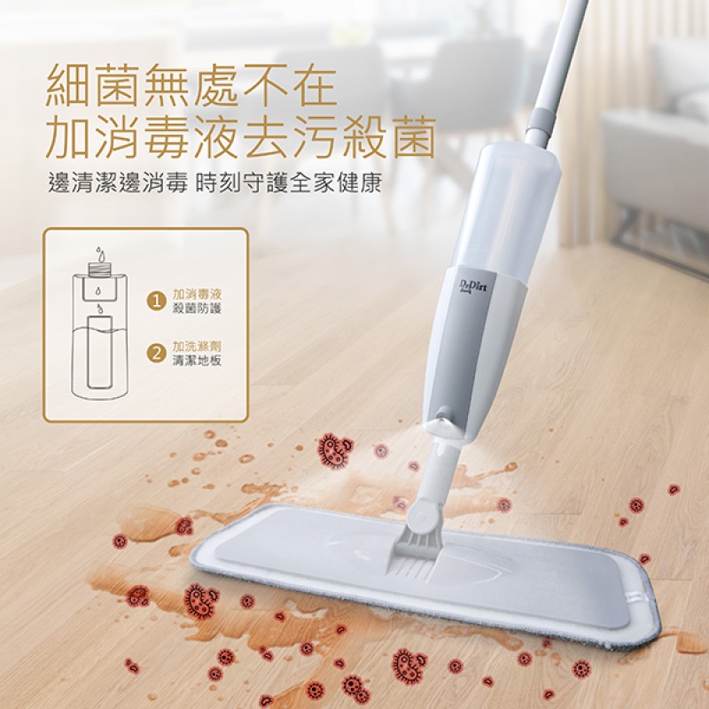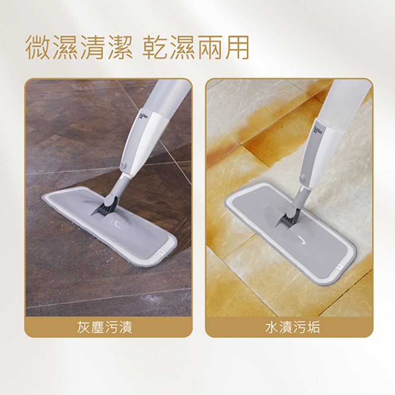 - 一噴一拖,乾濕兩用,快捷又衛生