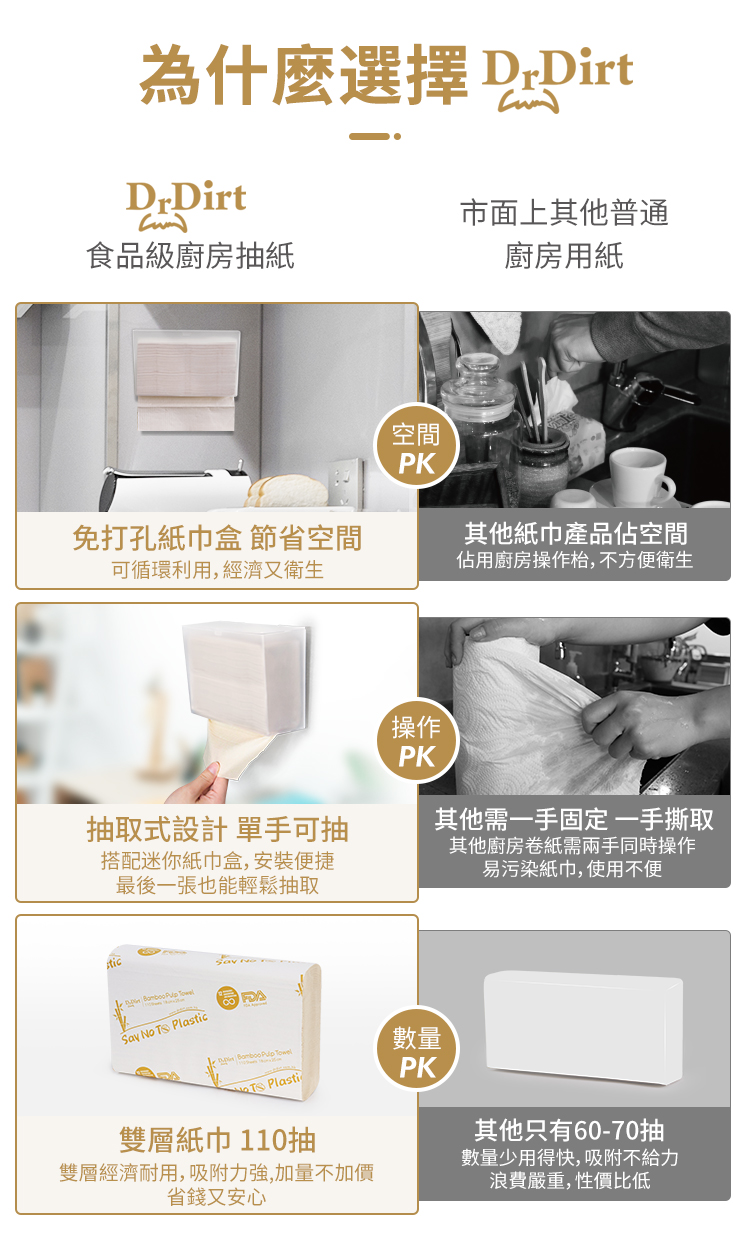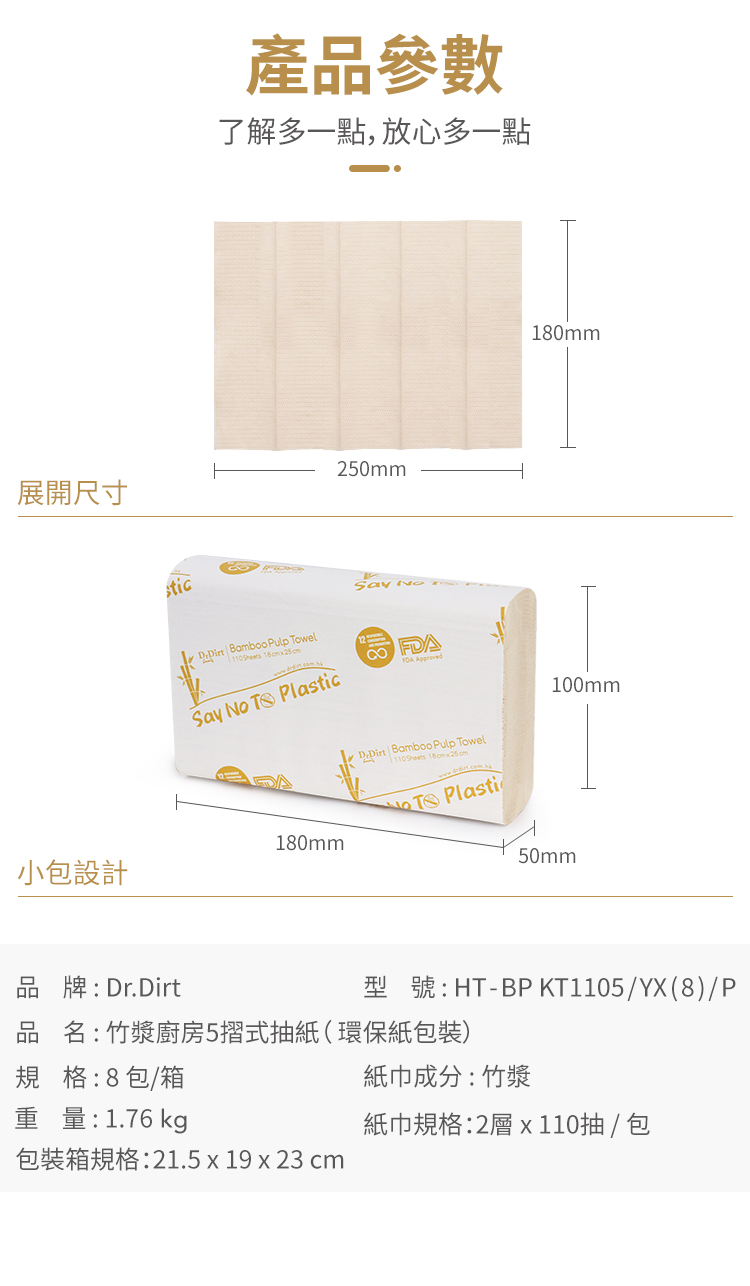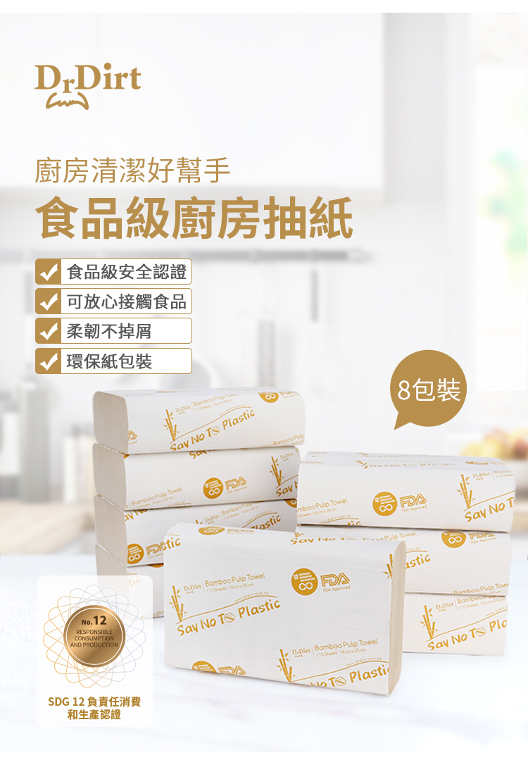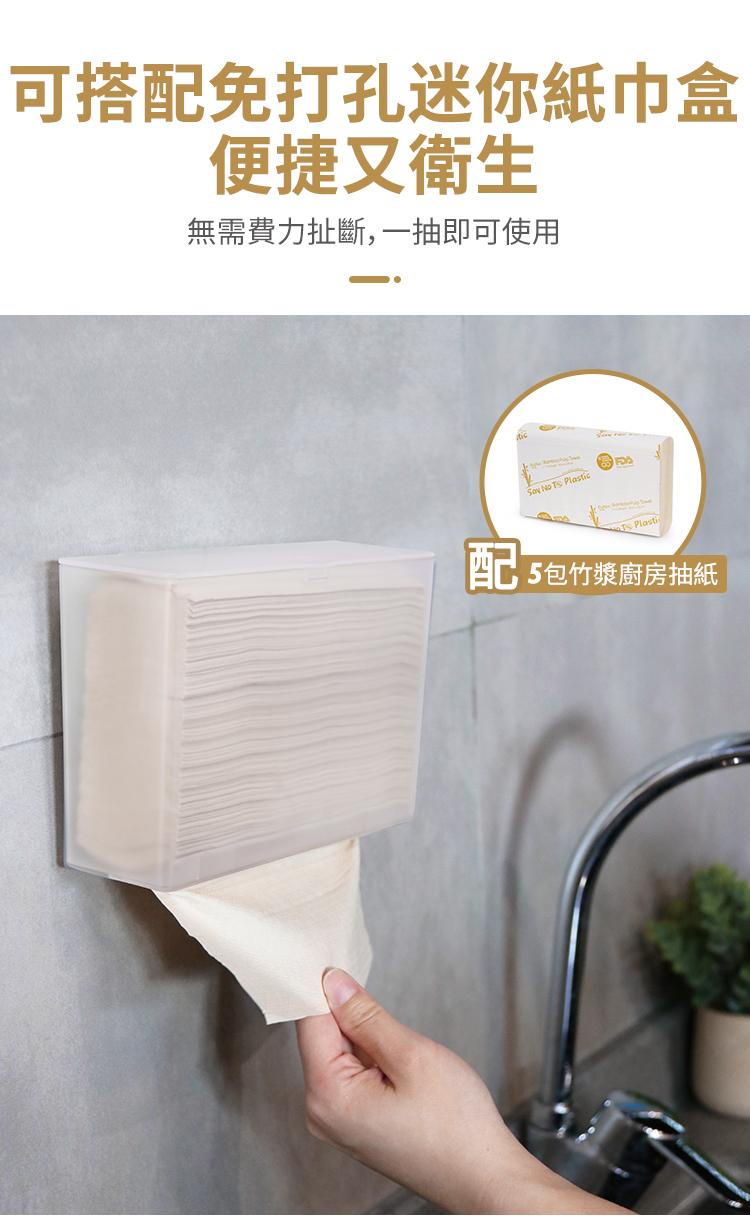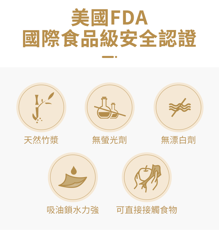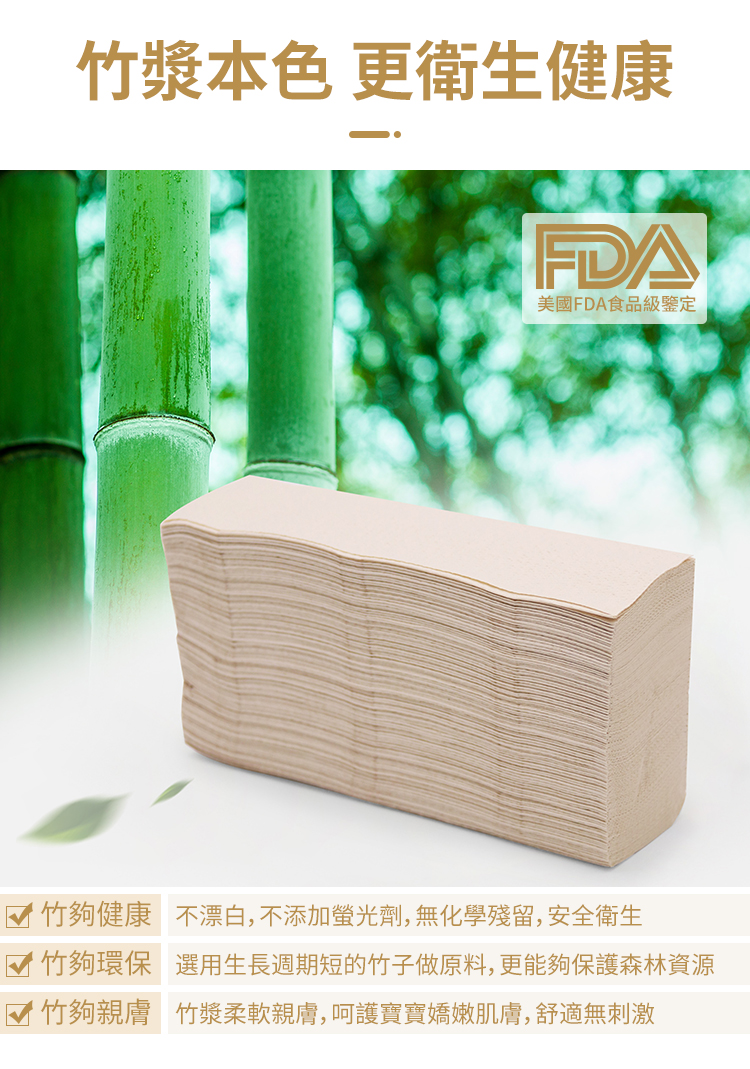 - 紙巾通過美國FDA食品級安全認證,採用天然竹漿