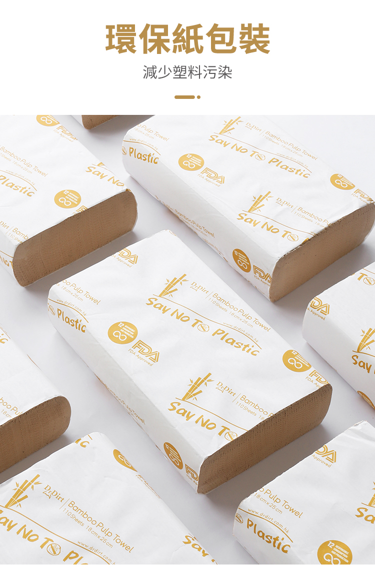 - 8包裝 / 18包裝 五摺式竹漿抹手紙(2層,110抽/包)