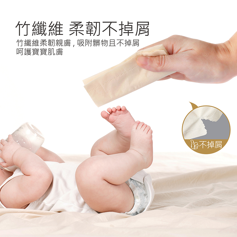 - 竹纖維柔韌不掉屑,能吸附髒物,柔軟親膚