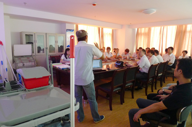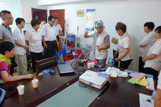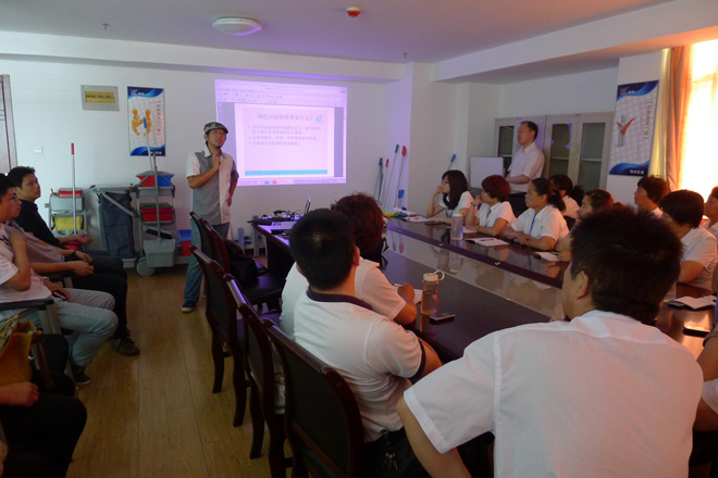 2013年6月,我司品牌經理/資深培訓師到達當地分銷商舉辦為期兩天的清潔工具標準化培訓課程。培訓對象:清潔公司在職人員培訓人數:約30人主講內容:醫院清潔系統、施達清潔工具使用、標色系統概念