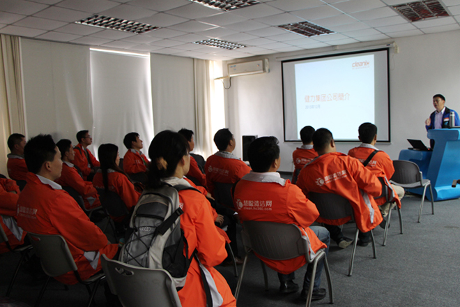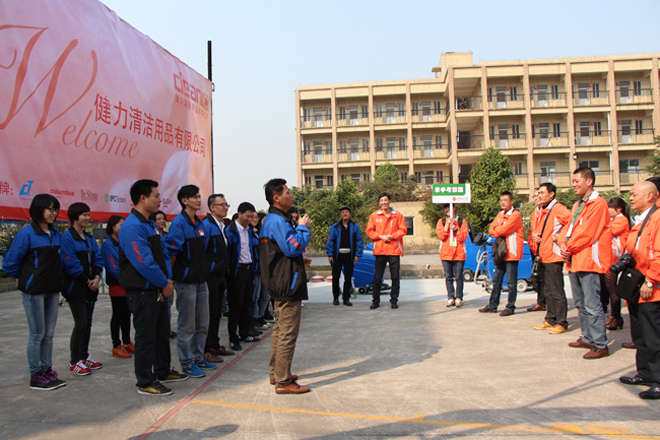 “百人買家團”於下午2點抵達我司佛山健力清潔用品有限公司,由產品培訓師朱老師介紹當天的活動流程