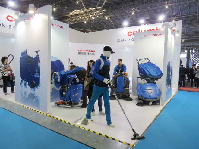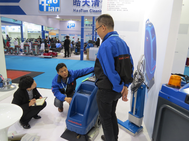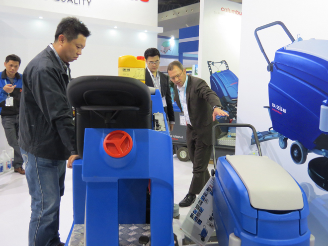 德國合作方 - 德國奧林匹斯總裁 Mr. Joerg Peter Staehle 親身在展場解說洗地機的使用功能