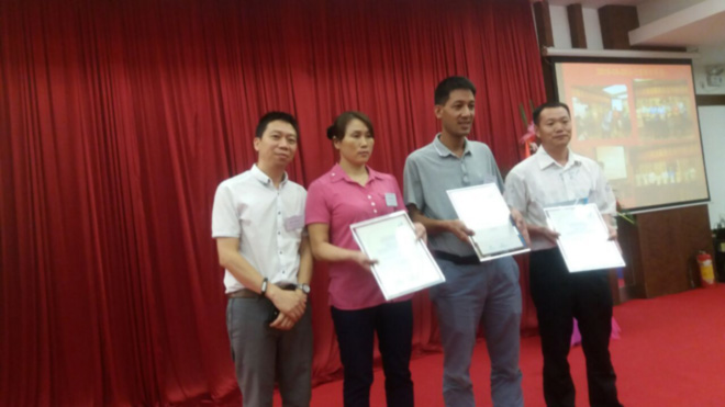 獲得第3名的企業及個人獎項領獎現場:(佛山市環美裝飾清潔工程服務有限公司) (廣東明龍環境工程有限公司) (佛山市坤龍環保工程有限公司)