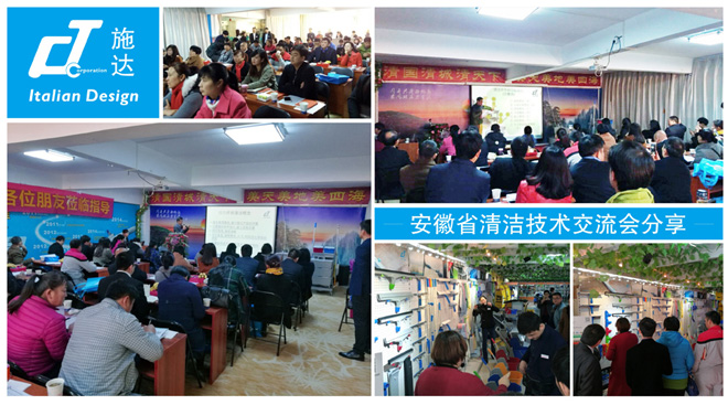 受安徽清潔行業企業邀請,佛山施達於3月31號參加安徽省清潔技術交流會活動,參加會議人員包括當地保洁公司管理人、物業管理人及清潔行業相關部門人員,會議以學習清潔行業先進技術和理念為主題而展開交流探討。 施達於會議中給大家分享了國內外全新清潔理念及觀念,內容包括(標準化管理給清潔行業帶來的收益及如何執行標準化、顏色分區系統的作用、中央清洗系統的效益等等….) ,分享過程引起很多行業管理人的共鳴,紛紛表示希望有更多機會相互交流學習以便提高自身企業及行業服務水平。