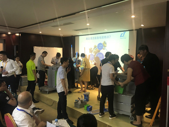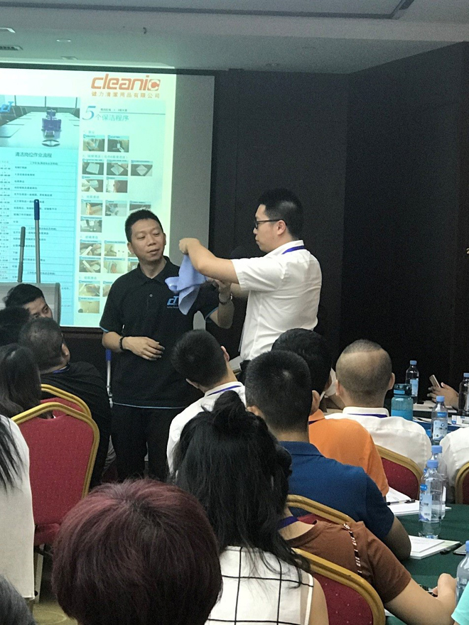 通過講解展示,結合現場日常保潔工具(除塵、濕擦、拖地、垃圾收集等專項)的小比賽,連同筆試,對通