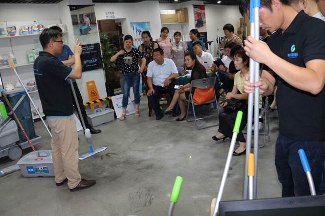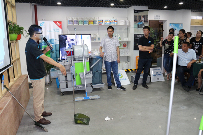 通過講解演示,讓來賓們體驗日常保潔工具(除塵、濕擦、拖地、垃圾收集等)的搭配及使用,連同裝配清潔