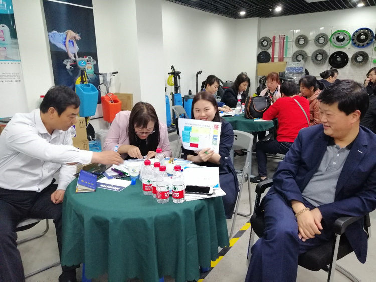 由施達總部分銷業務經理給來賓們講解演示產品在日常保潔的實際應用和管理,讓來賓們親