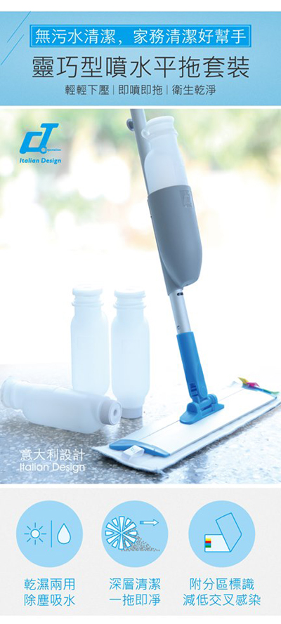 - 手壓式灑水開關,邊灑水邊拖地,操作方便,節省時間