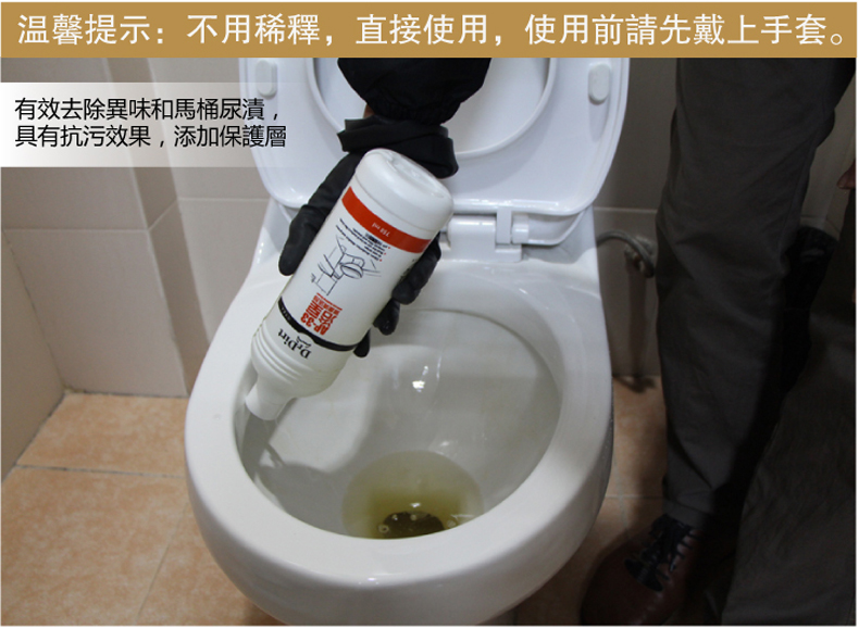 Dr.Dirt廁所清潔消毒劑,是一種帶有保護作用的鹼性清潔劑,使用後,瓷磚表面像加了一層保護膜,爽潔閃亮。能保護瓷磚表面不易沾染污垢,具有抗汙作用。使用時不用稀釋,可直接使用,使用時候請帶上手套保護雙手。