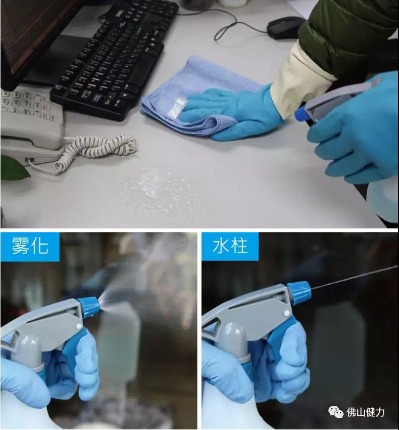 旋轉噴咀可調節為霧化及水柱狀。霧化可均勻噴灑消毒劑,水柱狀可清潔一些間隙等難以觸及的地方;