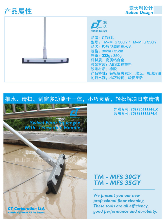 佛山施達現新推出一款專利產品: 輕巧型調向推水扒。它能滿足你日常推、掃、刮等清潔工作外,甚至讓您在狹窄空間(如洗手間)能靈活運用自如,該推水扒為180º手柄調向,雙層膠條設計讓它能夠靈活操作之餘更能保證極佳的清潔效果,膠條及每個部件都能更換使用,大大降低使用成本同時充分體現了環保設計理念,除了推水功能之外還能滿足日常垃圾、毛髮、灰塵的清掃以及牆面和玻璃刮水等工作,擁有這麼一件功能齊全的工具,讓繁瑣的清潔也可以很輕鬆。以下與您分享該產品詳情: