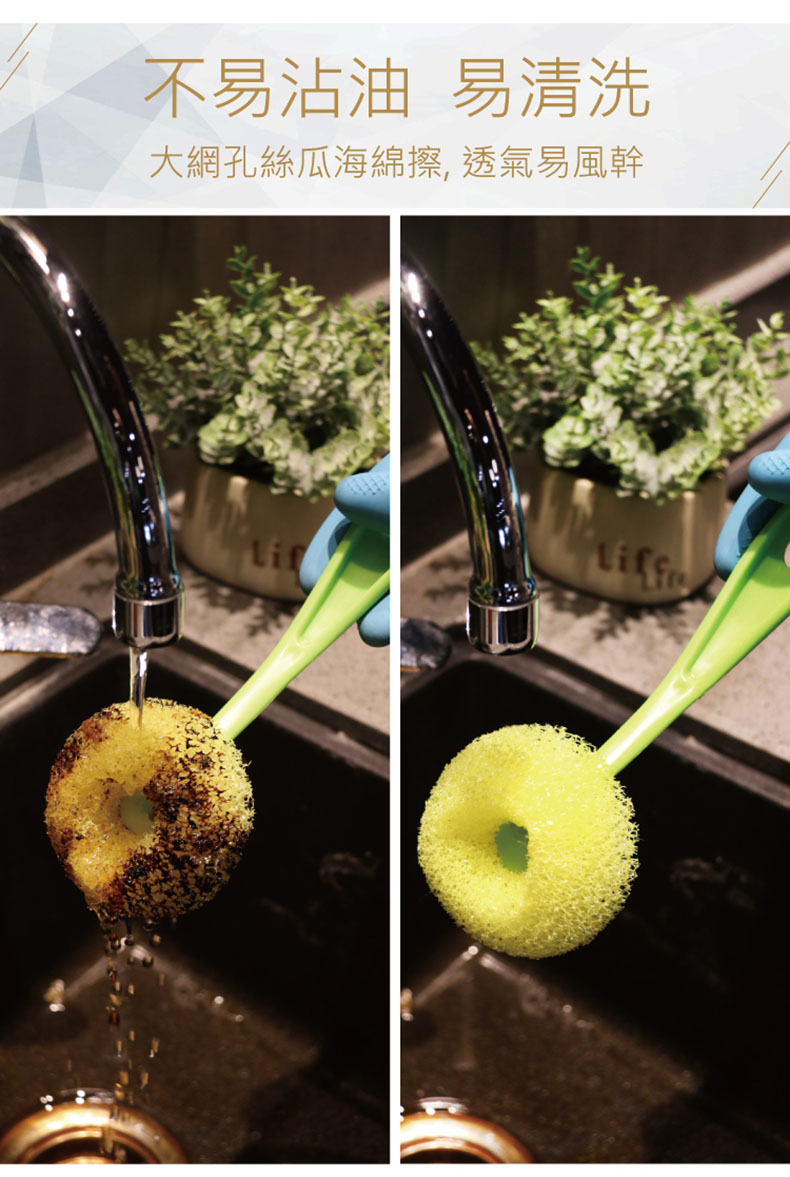 -刷頭採用仿絲瓜海綿材質,大網狀結構,柔軟耐用,不傷鍋內塗層;