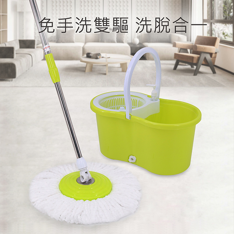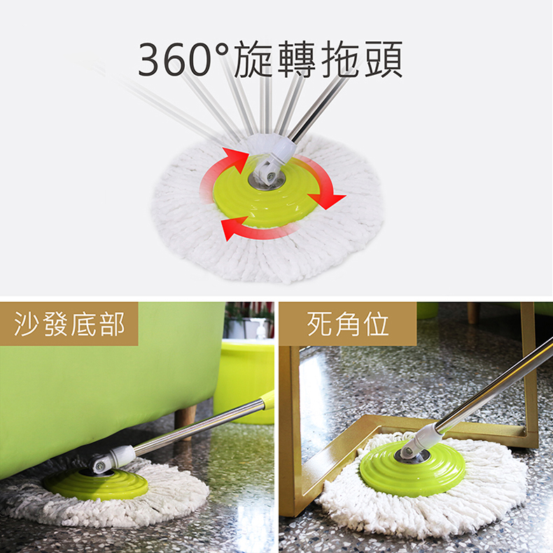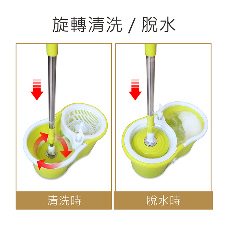 這時,一套免手觸式旋轉拖把桶套裝就為你省了不少功夫。只需用手向下壓,就能輕鬆地洗滌及脫水,加上360度乾濕兩用的旋轉拖頭,能對付難於清潔的死角位,配上不鏽鋼長杆,輕鬆裝拆,耐用方便。