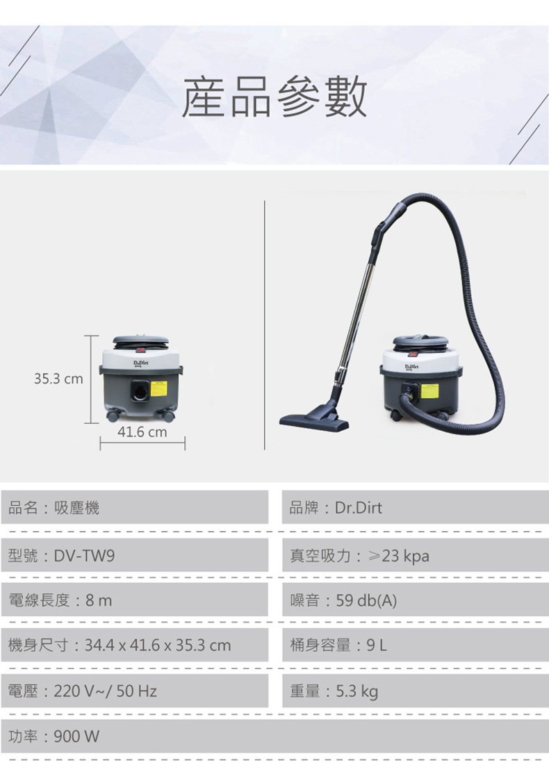 DrDirt 吸塵機 (含標準配件+20個無紡布塵袋)