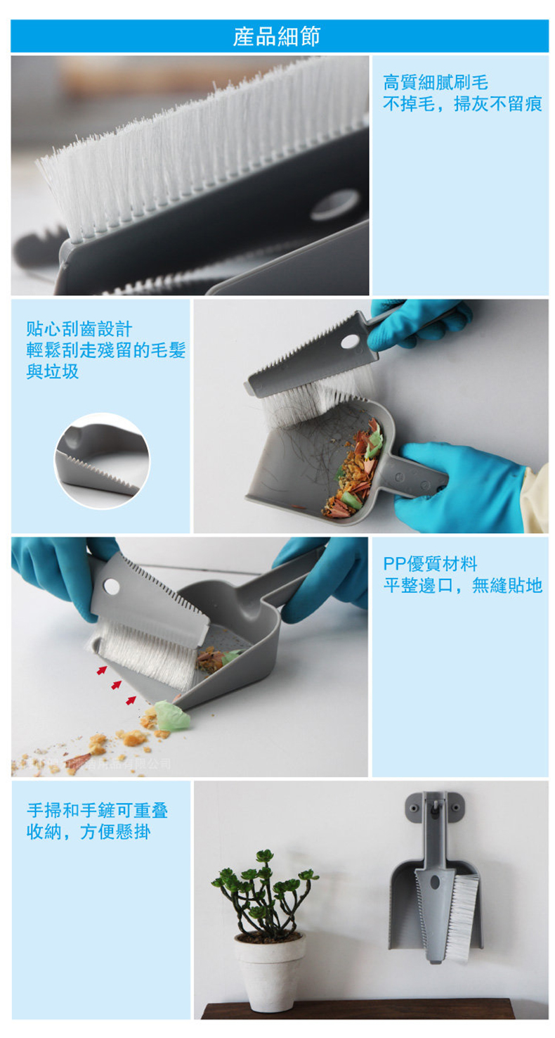 - 手掃和垃圾鏟可重疊擺放設計,方便懸掛收納