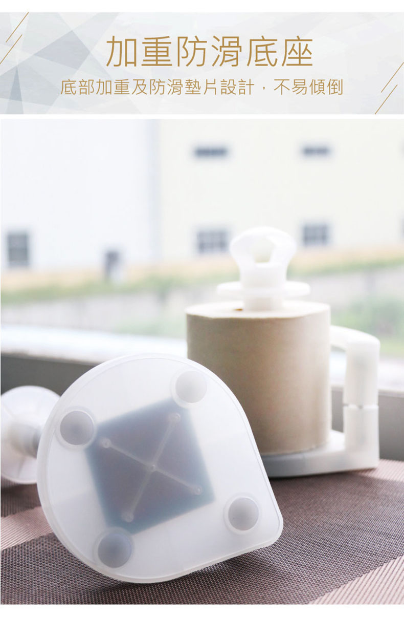 - 彈性壓頭,助你輕鬆撕取卷紙,避免手部接觸卷紙,確保衛生