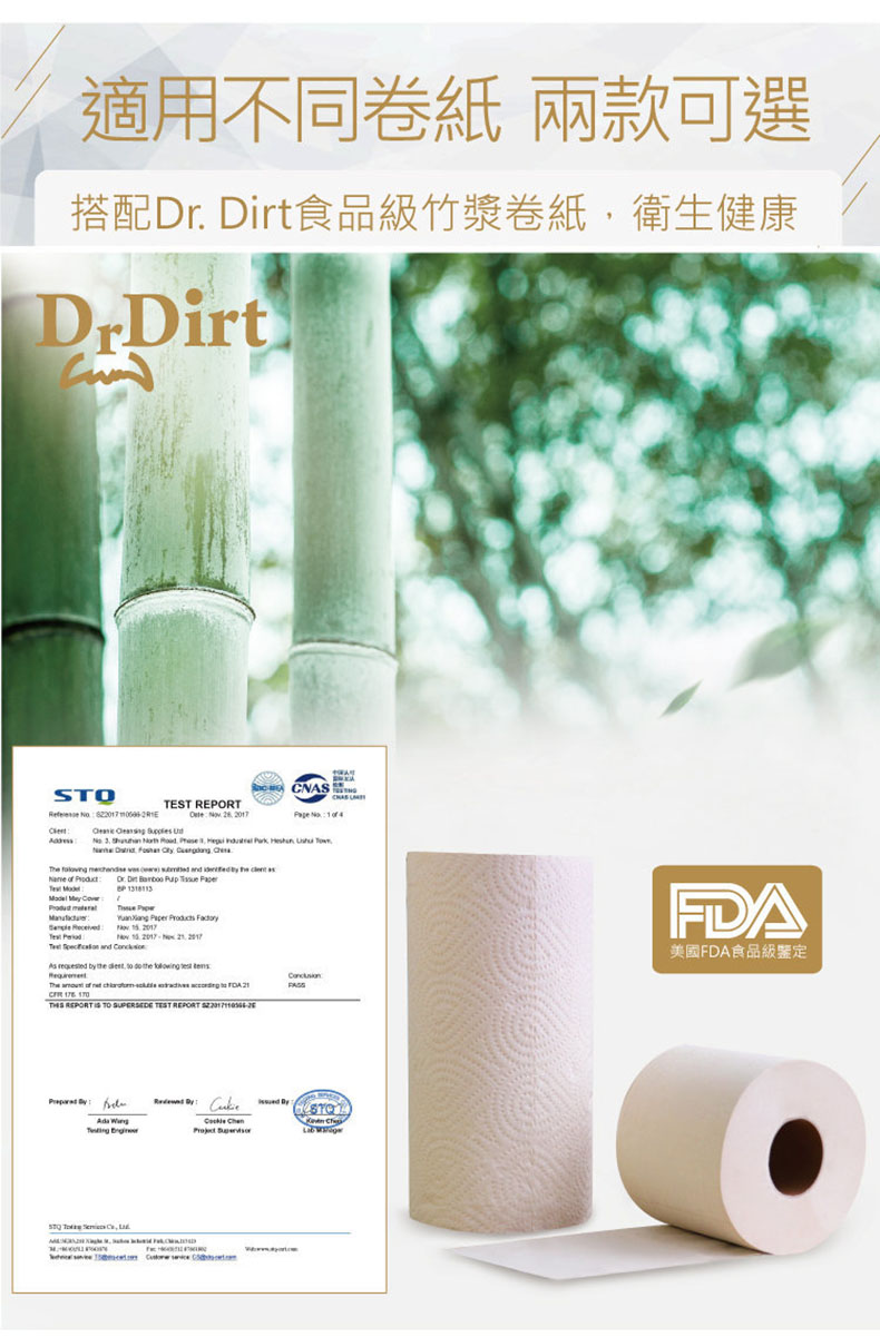 - 配用Dr. Dirt 食品級竹漿卷紙,更安全更環保