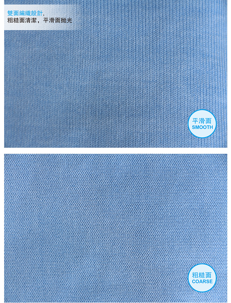- 雙面編織,粗糙面清潔,光滑面拋光