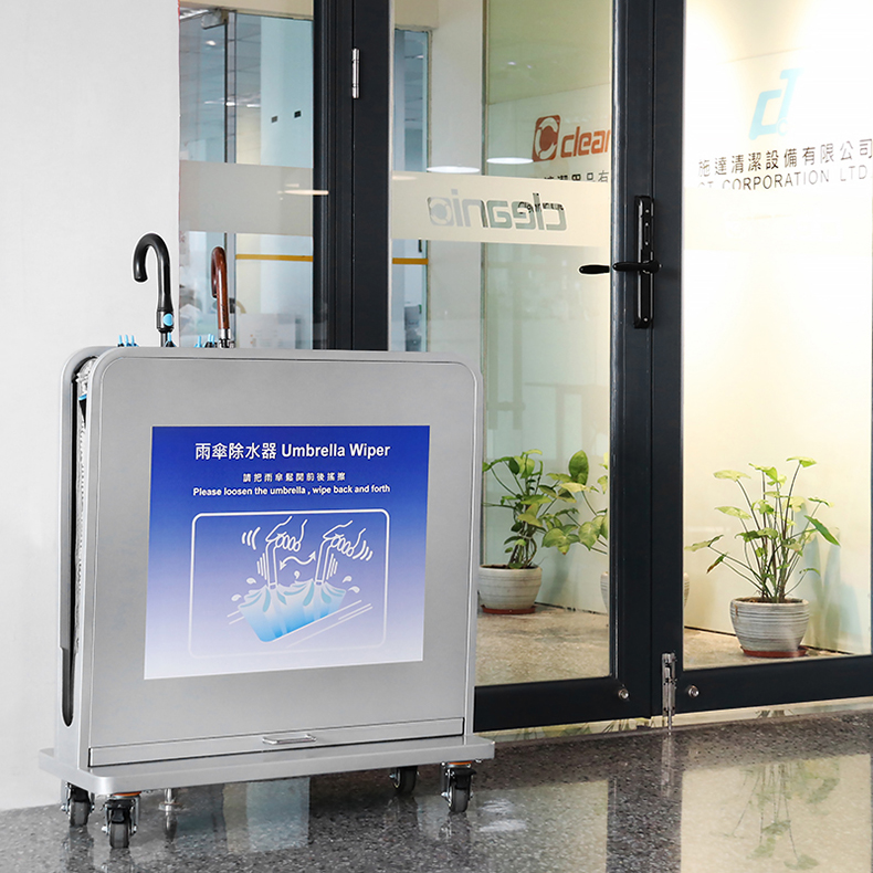 現時商場大廈所採用的,不是膠地墊、雨傘膠袋,便是普通風乾機,保安員或清潔工仍要不時抺乾地面。