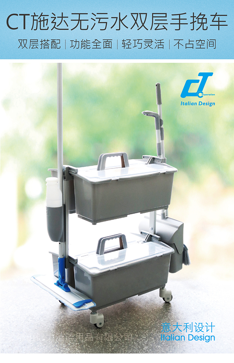 CT輕巧可携手推清潔車,針對不同範圍進行不同程度的清潔消毒工作,利用收納於車內的各種清潔工具,甚至裝上CT輕巧型噴水地拖、DR.DIRT防風垃圾鏟連掃把等;透過用上車上不同工具,通過對不同環境按不同清潔程度用不同顏色的標示,使清潔的管理工作系統化,省力之餘有效做好防疫工作。防疫並非單純清潔便可了事;執行完善的清潔規劃達至成效才可做到真正防疫。
