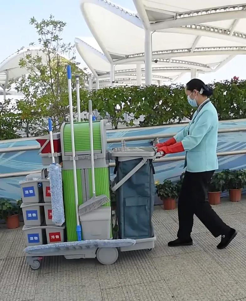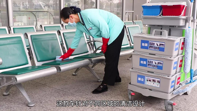 李主管表示:這款清潔服務車也是她從業以來第一次見到的設計,不會因為操作失誤或異常碰撞而發生安全隱患。這款清潔服務車可以針對不同區域的清潔設計,很好的實現了他們專案標準化的管理。