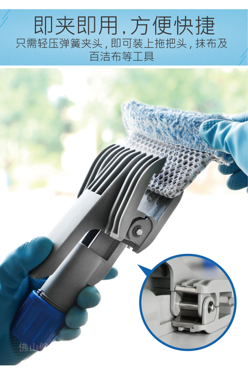 可夾抹布、百潔布、拖把頭等,便於清潔地板、牆面、玻璃。