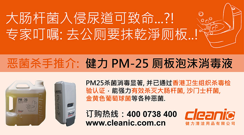 我司的PM-25 坐廁板泡沫消毒液的殺菌消毒顯著,氣味花香, 亦通過香港衛生組織殺毒檢驗認證,能強力有效殺滅大腸桿菌、沙門士桿菌、金黃色葡萄球菌等各種惡菌,確保使用環境安全,最正是連香港多間大型企業及商家都青睞並使用中。