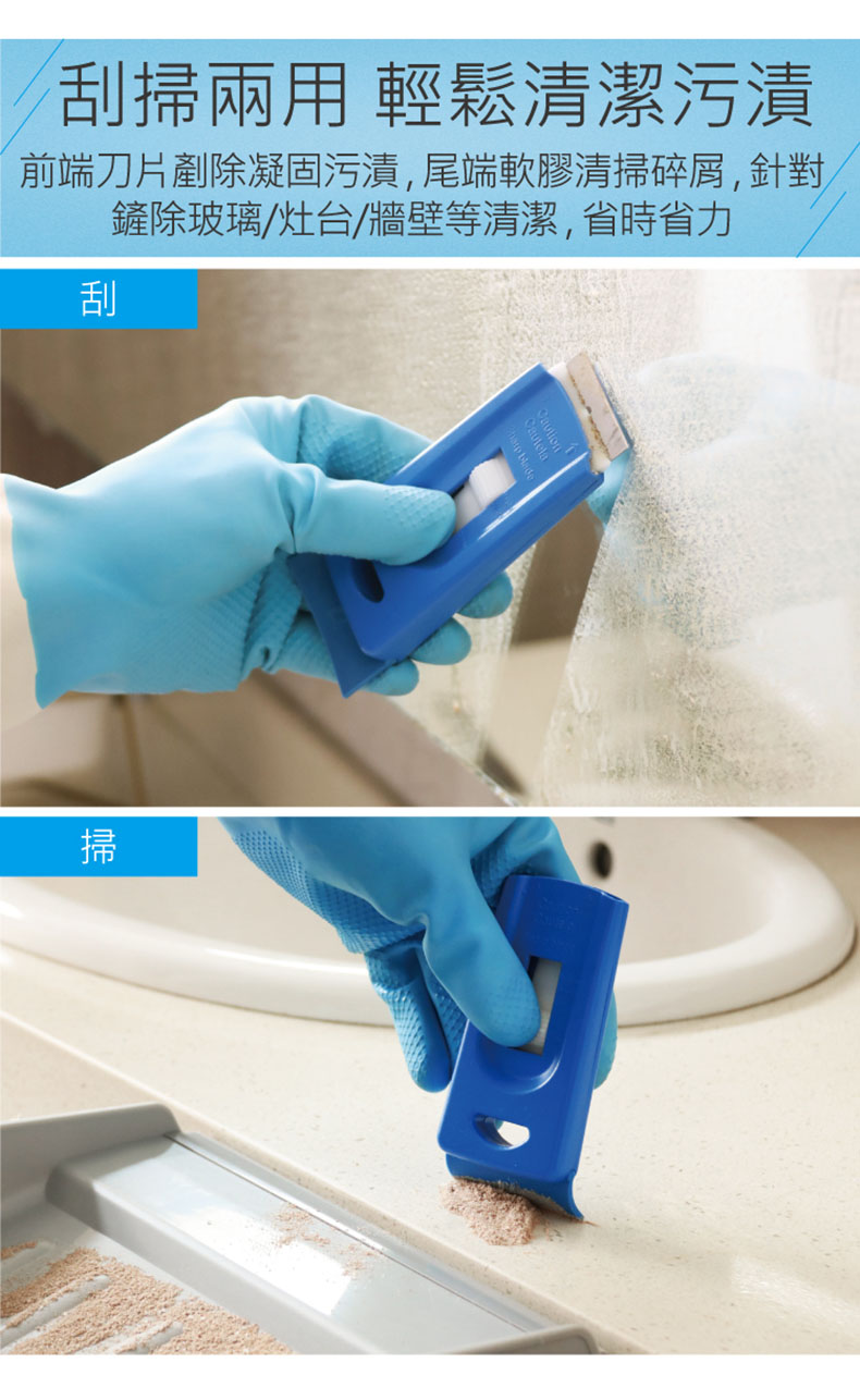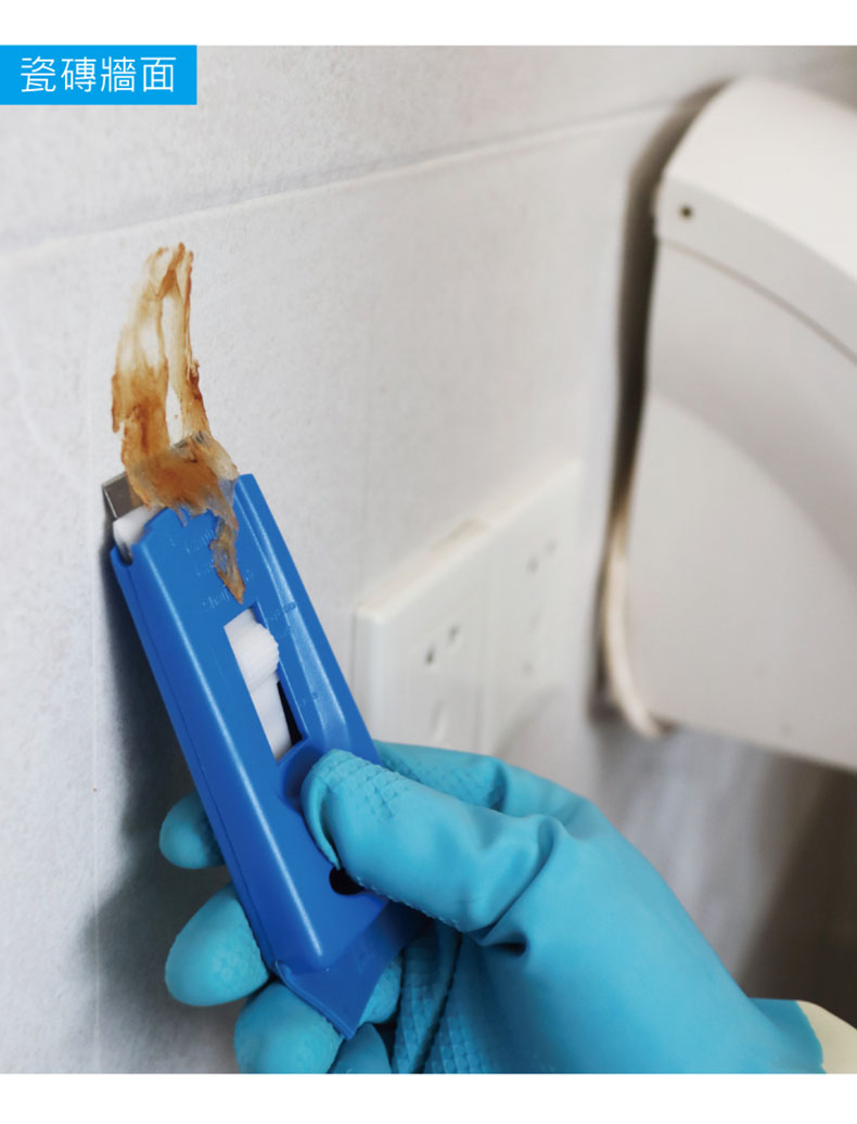 - 針對鏟除玻璃,牆壁上之頑固污漬,安全耐用,省時省力