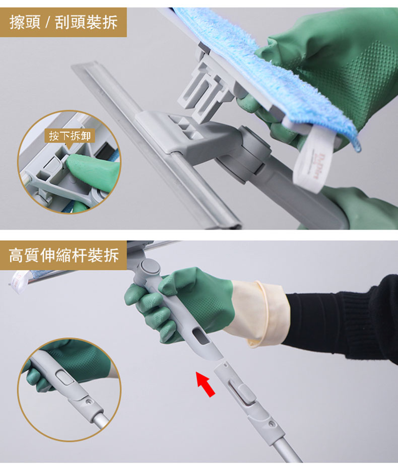 新產品的設計將塗水器和刮水器相結合,角度定向旋轉,清潔無死角,其超微纖布強效吸塵吸水,使玻璃回復亮澤,手柄多功能設計,可輕鬆剷除污垢污漬,一氣呵成,不再綁手綁腳。搭配高質鋁合金伸縮桿,輕鬆塗擦高處玻璃,輕便又耐用。其膠條及塗水布可靈活更換裝拆,環保省錢,與玻璃清潔劑一起使用,更能加強清潔效能,效果非常顯著。 健力官網另有多種款式滿足不同客戶需求,歡迎選購。