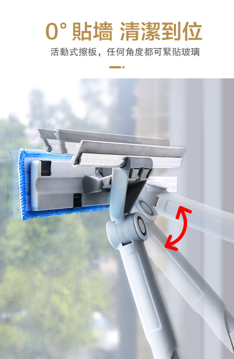 任何角度可緊貼玻璃,擦刮一體,高效清潔!