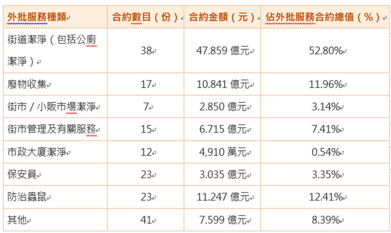 外批服務合約中,廢物收集合約金額佔比不小,這正說明了市民與政府也意識到廢物收集的重要性。